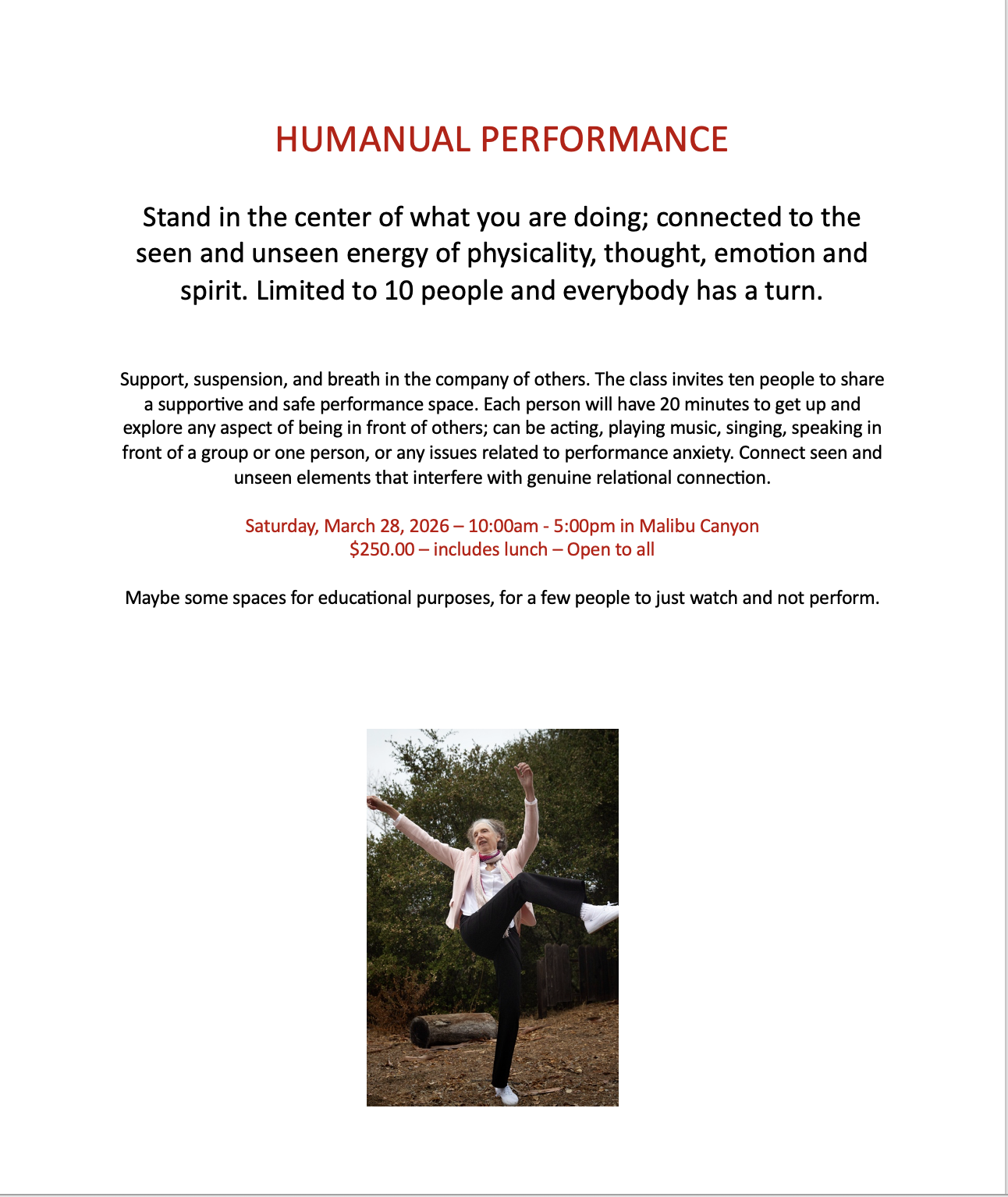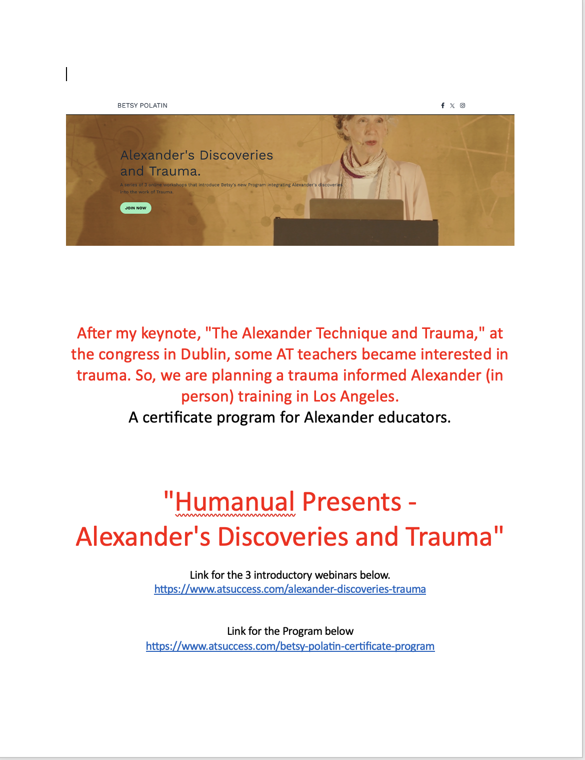 The Humanual Exploracise teachings are offered in small group classes, at large international conferences, and in private coaching sessions. The material is designed for personal and professional growth.