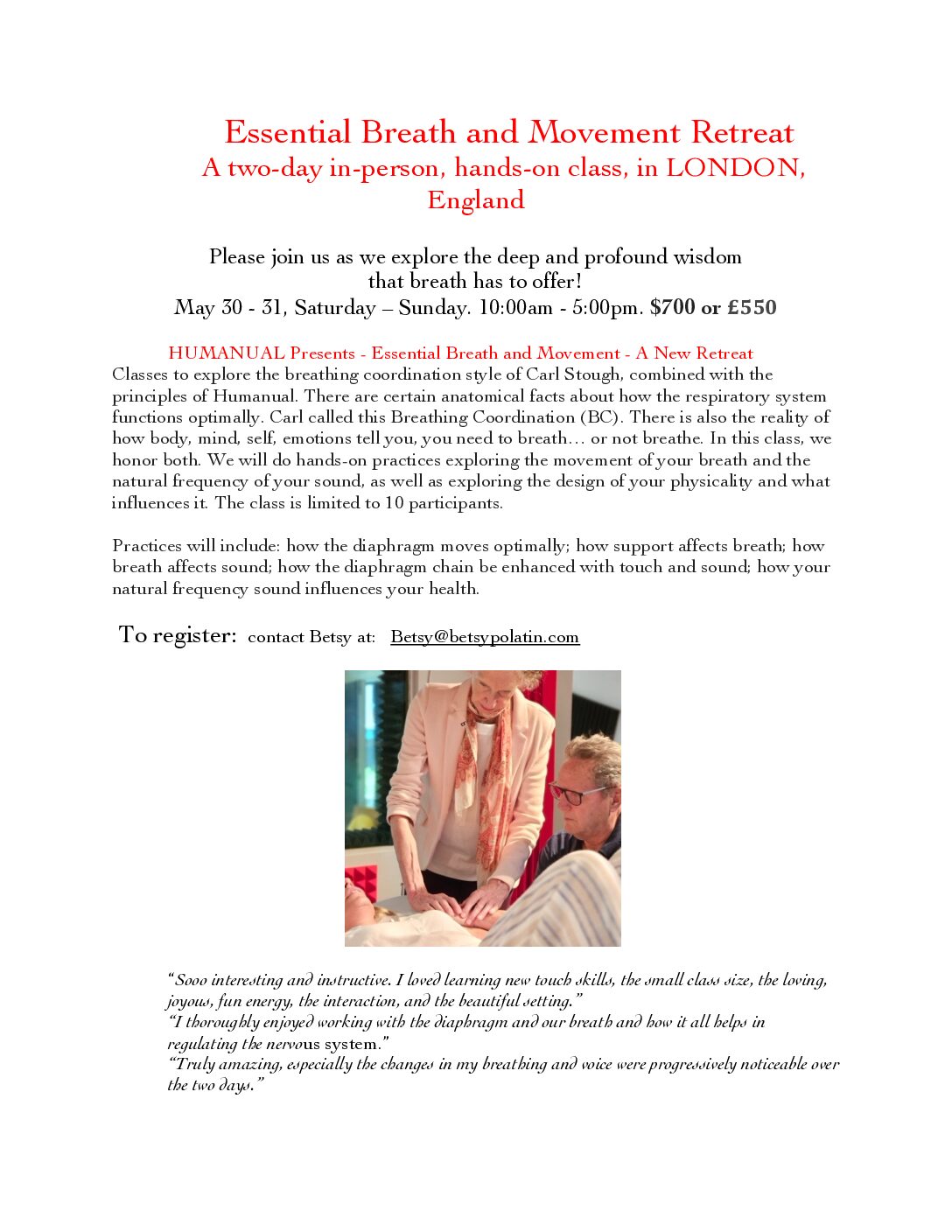 A two day hands-on in person retreat in London with Betsy Polatin.