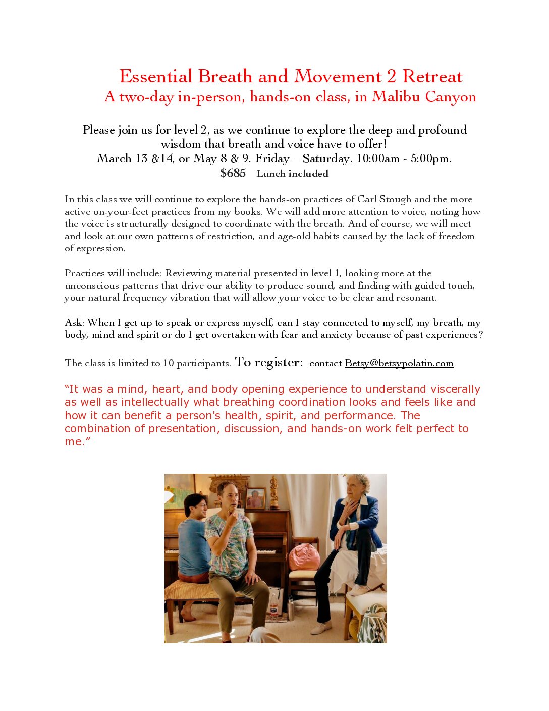 A two day hands-on in person retreat in Malibu Canyon with Betsy Polatin.