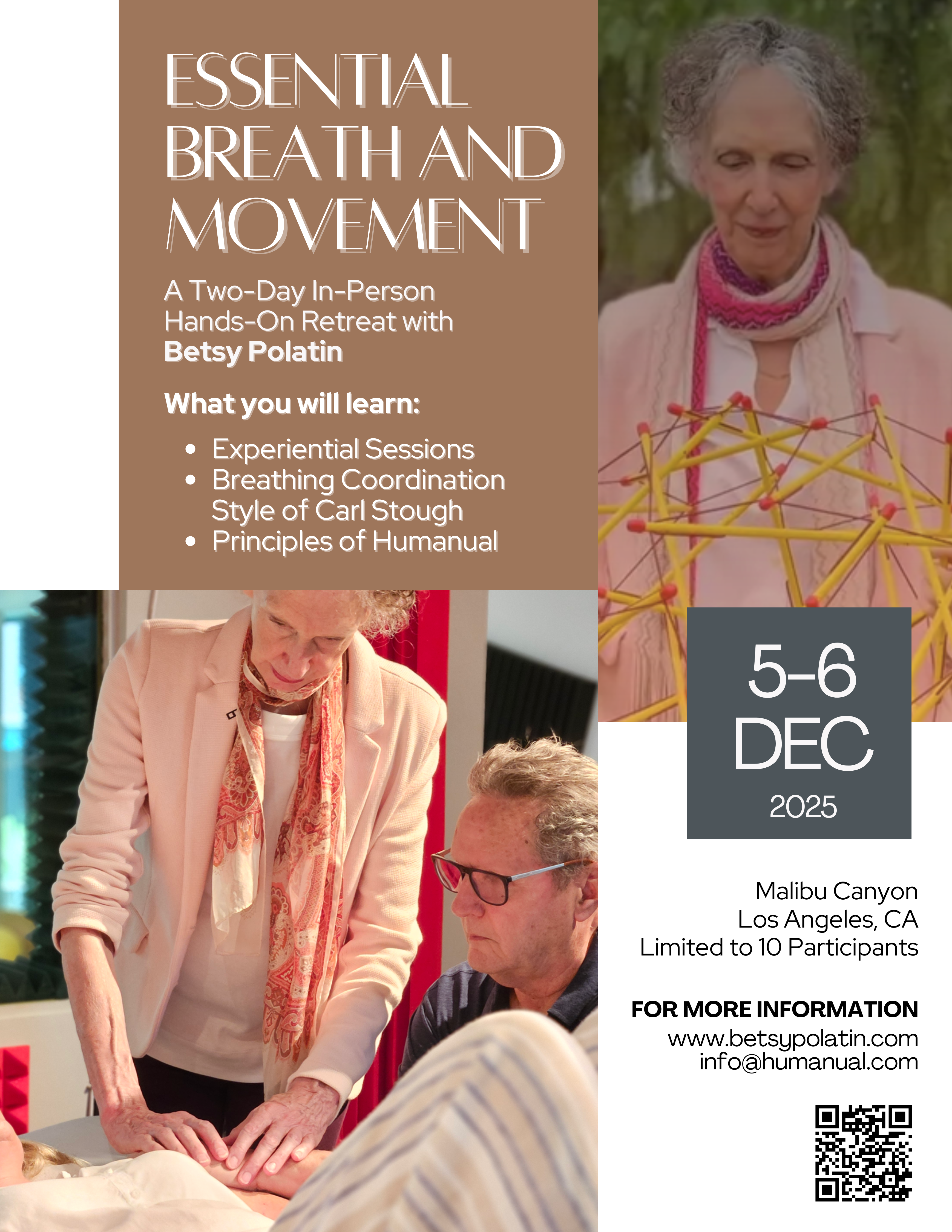Join breathing and movement specialist Betsy Polatin to learn the ‘Humanual’ breathing and movement practices that have the potential to calm your mind, body, and nervous system in these turbulent times.